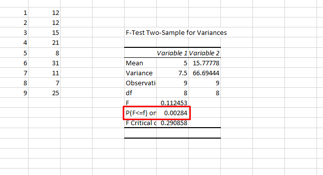 Si el valor de p es menor de 0.05, significa que tienes variaciones desiguales. Entonces, para ejecutar la prueba t, deberás usar la opción de varianzas desiguales.